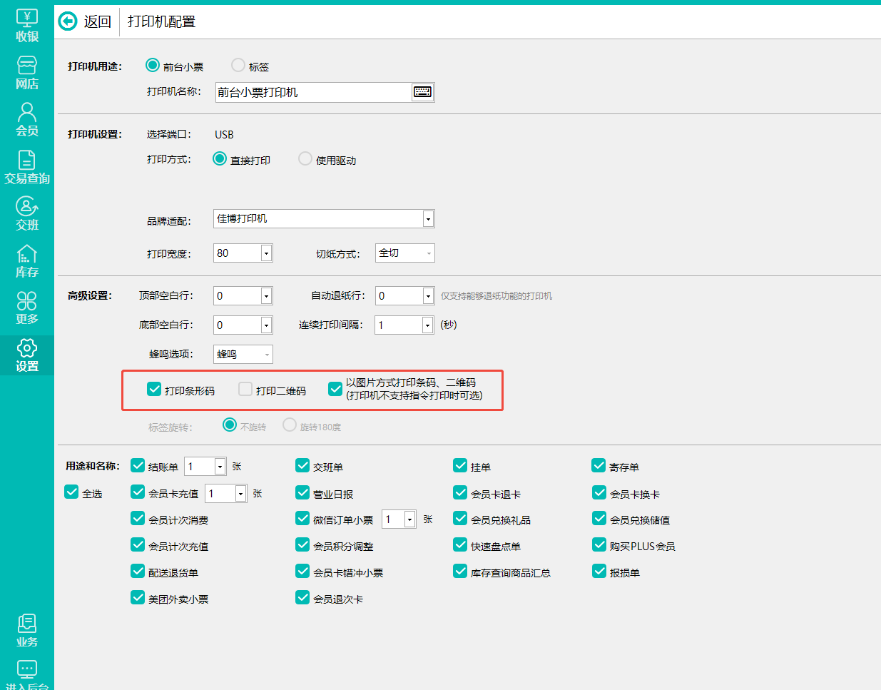 (1)打印条形码识别:需勾选打印条码+以图片方式打印条码二维码