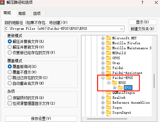 3.解压协议文件到软件安装目录:盘符:\Program Files (x86)\Paidui-EPOS\EPOS\EPOS