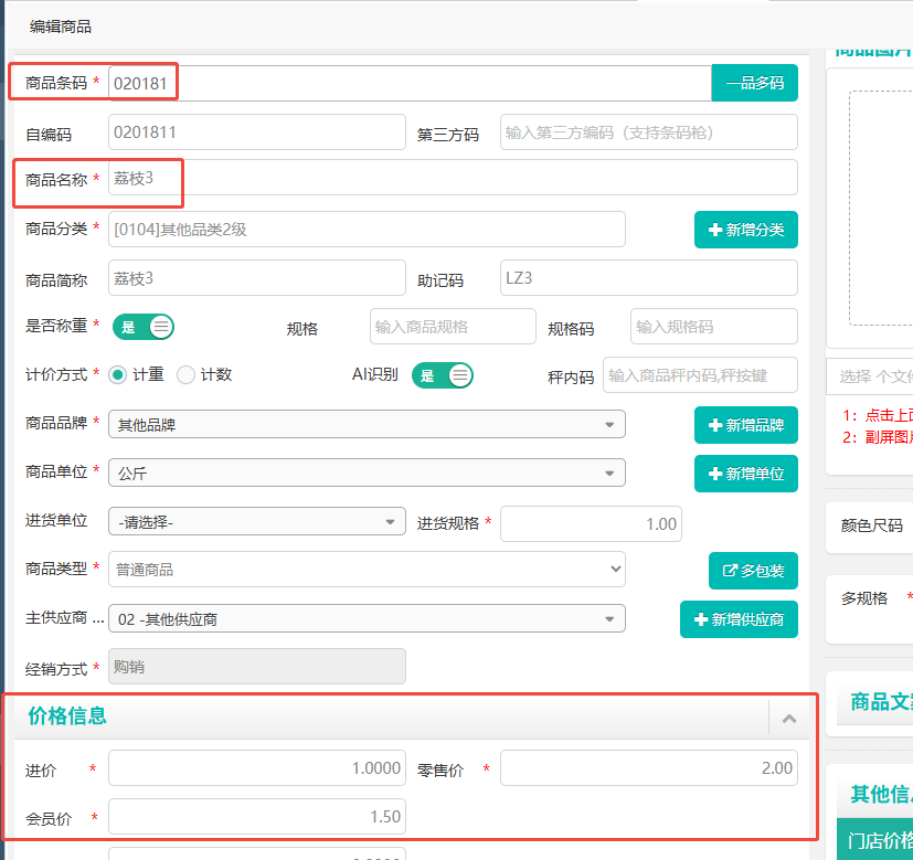 3、支持聚商荟后通过商品资料/调价单/促销单,修改商品零售价或会员价自动同步更新到智控价签显示。