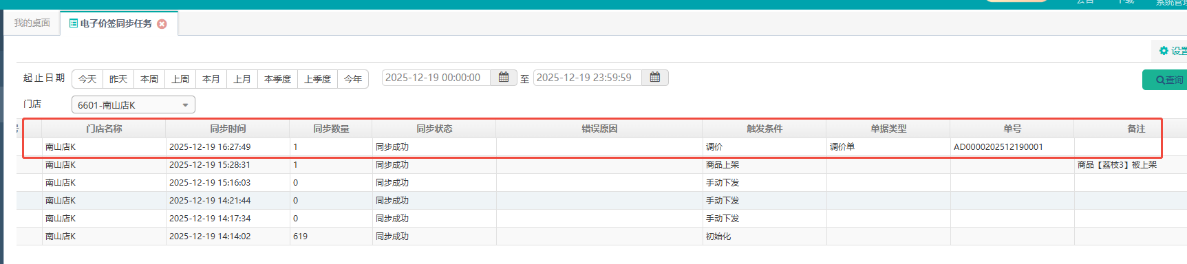 在系统管理->电子价签同步任务->查看同步成功商品数量