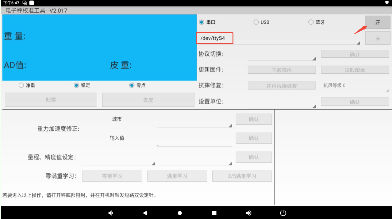 (2)打开桌面内置电子秤校准工具