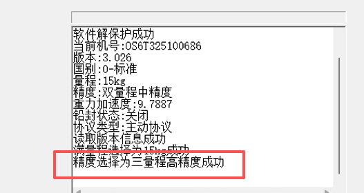 (4)称不放东西,设置分度值为15KG,双量程中精度,确认,提示双量程精度成功,设置完成。