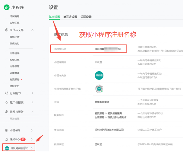 小程序后台名称/小程序appid/小程序营业执照主体注册名称/营业执照社会信用代码/注册日期(成立日期)/小程序业务描述