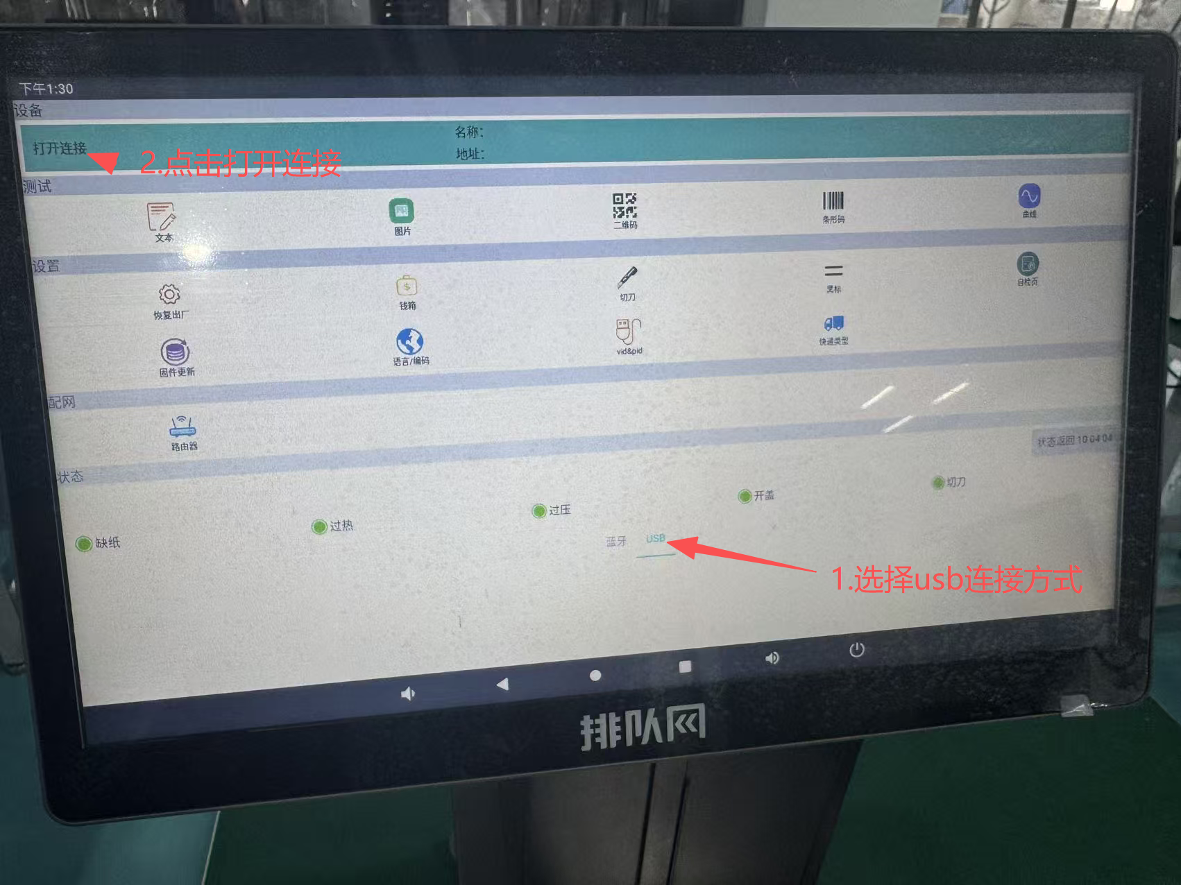 2)选择usb连接和点击打开连接