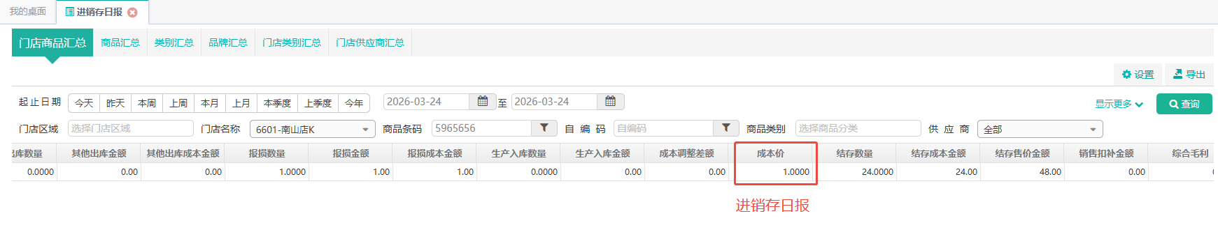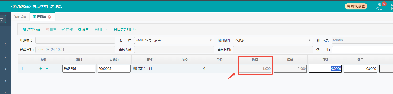注意:报损单价格不等于商品资料进价,因为成本价不是进价,成本价是通过进销存日报每天计算出来的