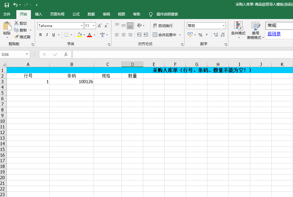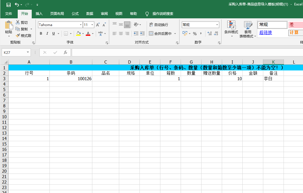 1.行号,条码必须填写,否则会提示查无导入商品信息