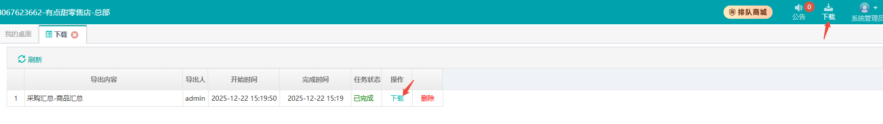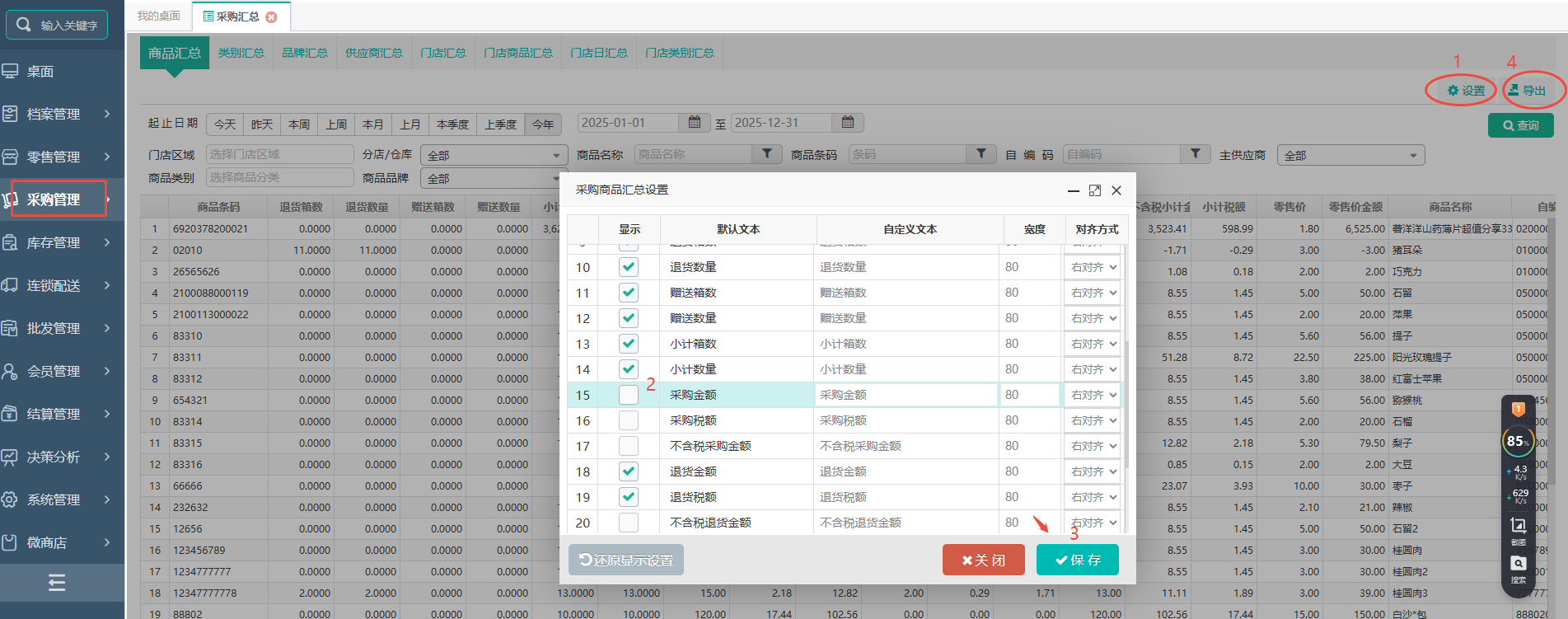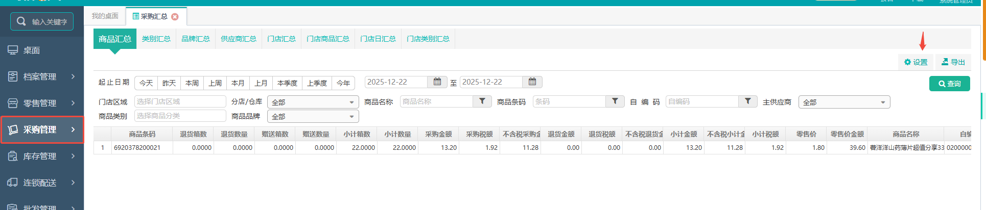登录聚商荟后台->采购管理->采购汇总->查询需要导出单号信息->打开设置