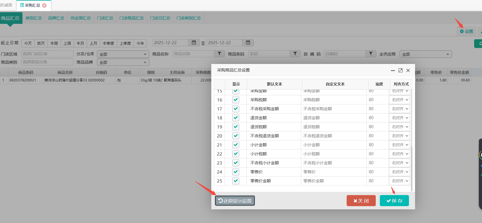 如需要恢复默认导出所有字段,只需要点击设置里还原显示设置,保存即可。