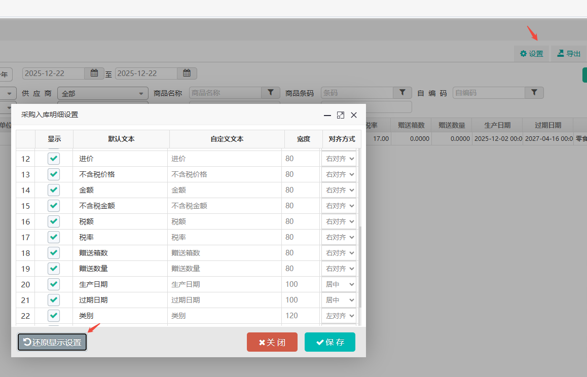 如需要恢复默认导出所有字段,只需要点击设置里还原显示设置,保存即可。