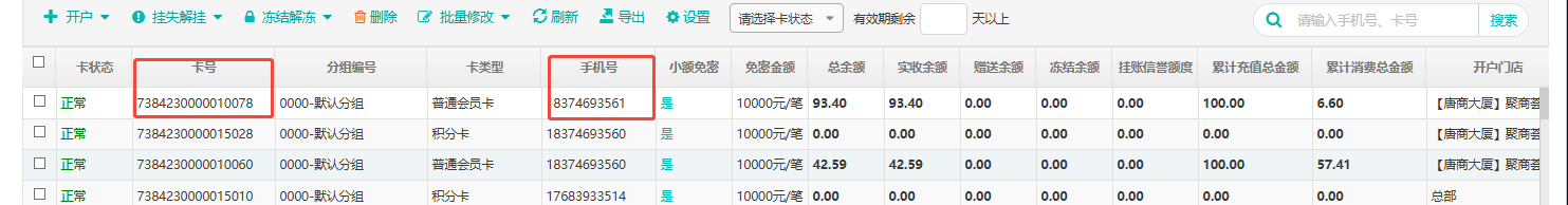 未开启模糊查询需要全部输入完整会员信息才能检索出会员。开启会员允许模糊后,可以输入所勾选参数,如卡号/手机号前几位或后几位进行模糊查询除会员信息