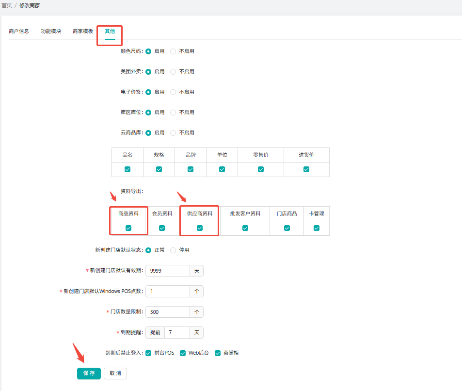 资料导出勾选【商品资料】【供应商资料】,保存,重新登录聚商荟后台生效。