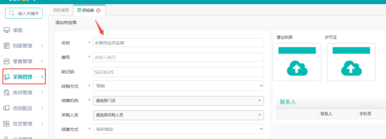 然后在采购管理-供应商-新增供应商(对应导入商品资料的供应商名称)