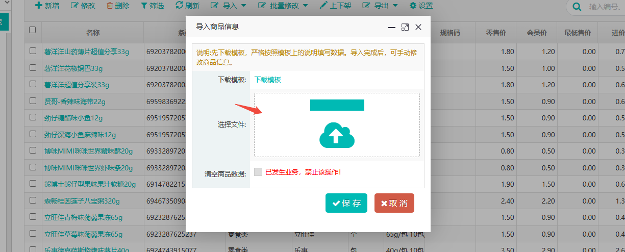 登录聚商荟后台,在档案管理->商品资料->导出->选导出商品资料(按导入模板)