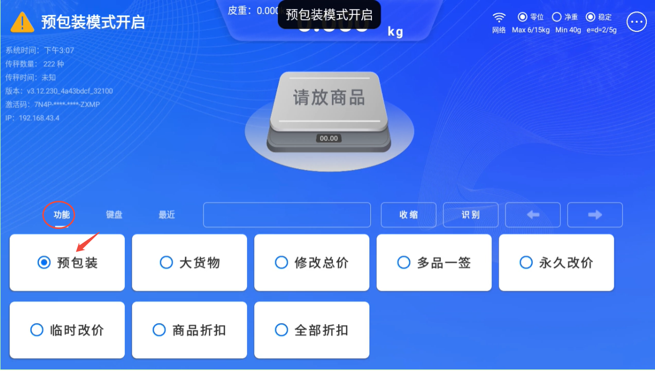 (3)学习商品成功后,在重新放入商品识别商品后点击打印预包装标签