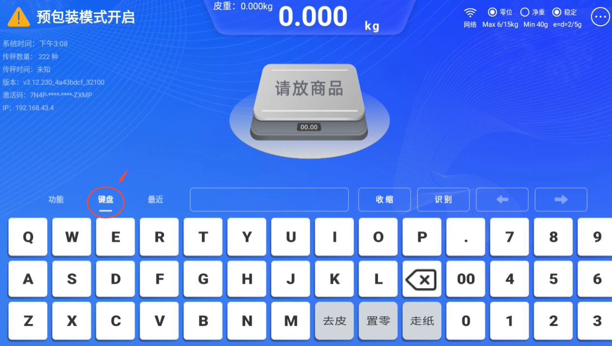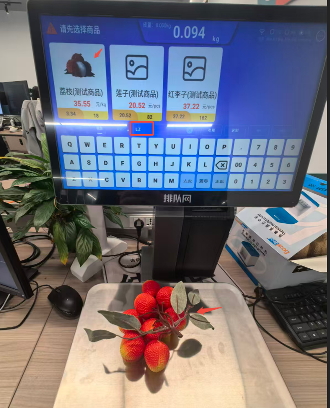 (2)选择键盘模式,秤盘放入测试商品模型或实际商品,选输入商品名称首拼字母,点击检索出来的商品学习成功。