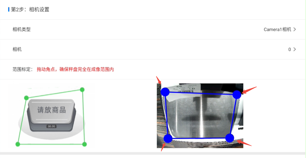 拖动秤盘四个圆角标,标定好AI识别秤盘范围,不要超出秤盘四个角边缘范围。