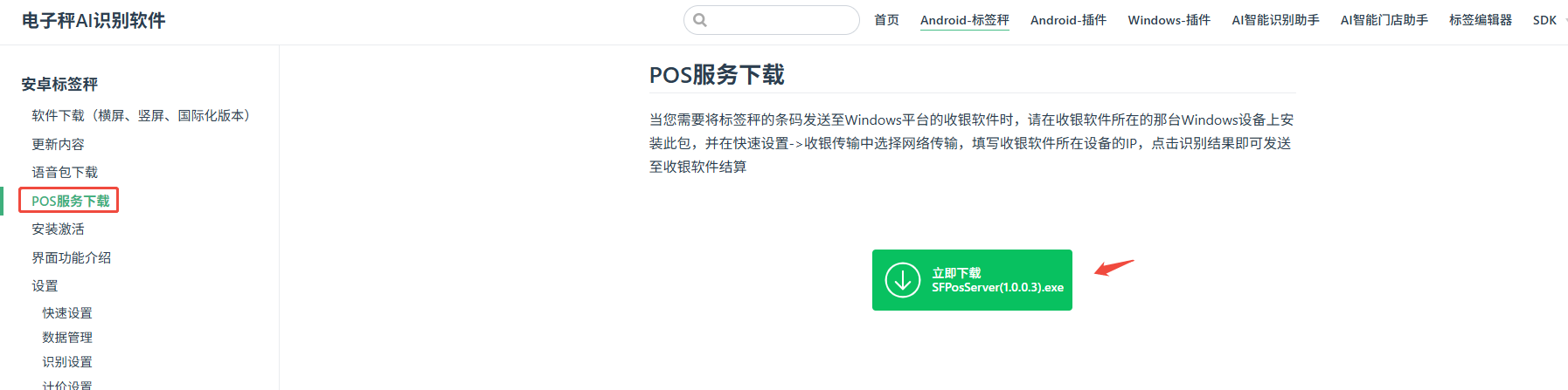 (1)准备工作先到食方官网上 https://scale.shifang.co/scale/app/Android-app4.0.html 下载POS服务包,这服务包安装在win收银机上,直接下载安装好即可。
