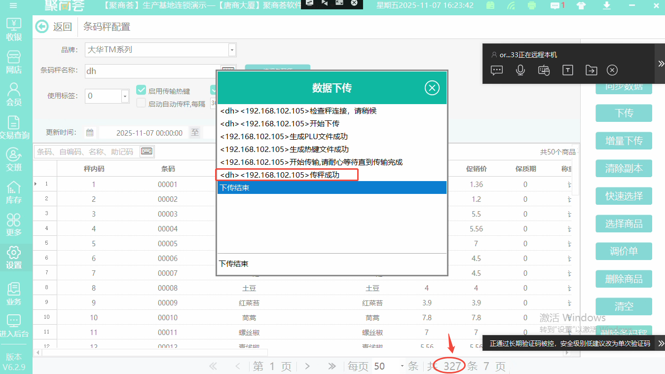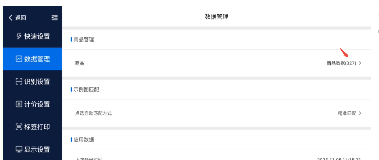 收银软件传秤成功后,在数据管理-商品里可以查看软件传秤成功商品数量,展开可以查看商品信息。