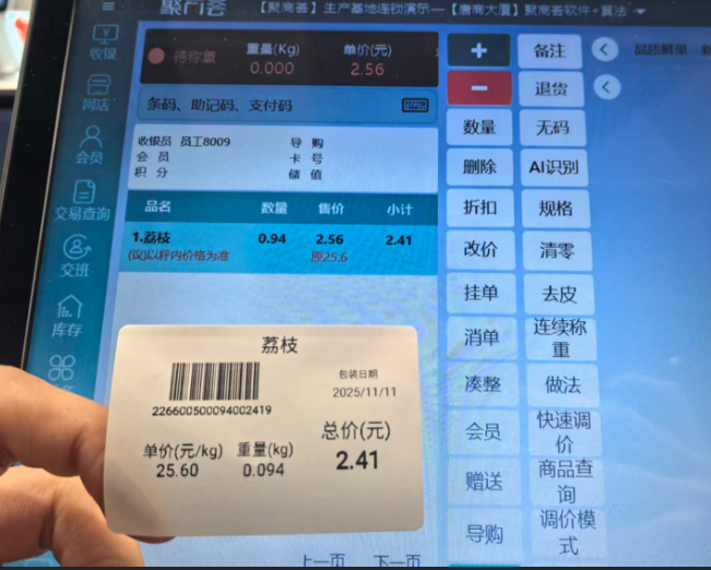 学习商品成功后,在重新放入商品识别商品后点击识别的商品会打印包装价签。