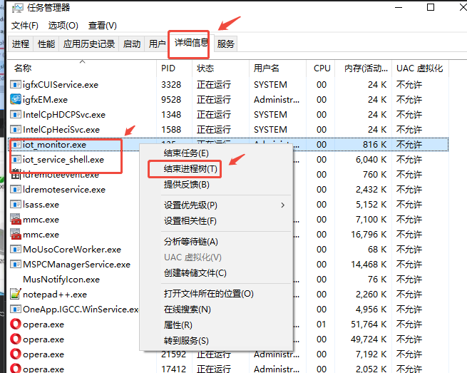 关闭任务管理器支付宝iot_monitor 和iot_server_shell两个服务进程
