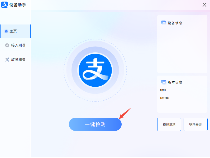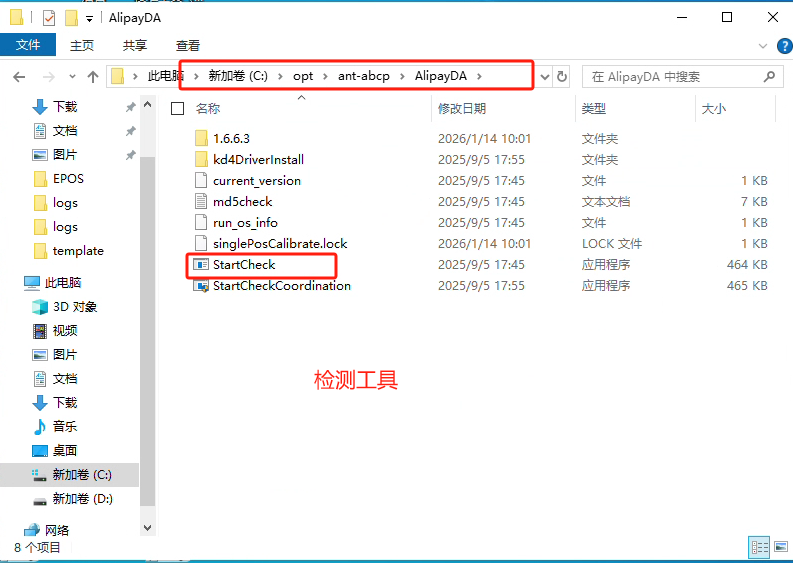 接上支付宝无线发射器到电脑上,并打开C:\opt\ant-abcp\AlipayDA ,打开检测程序StartCheck.bat,点击一键检测