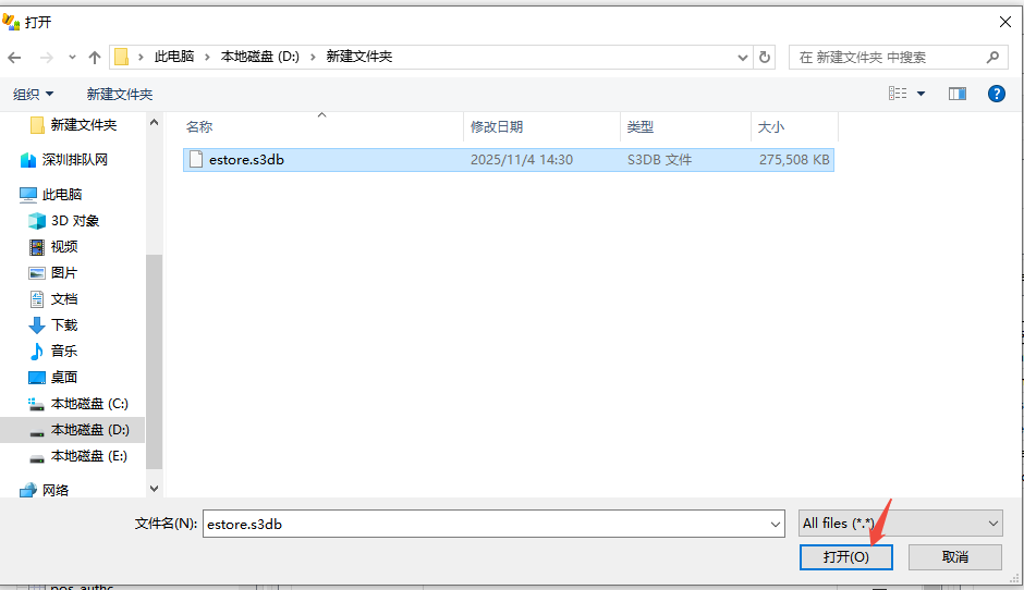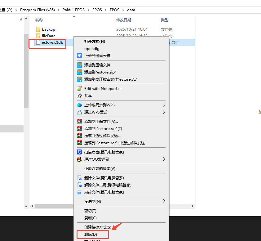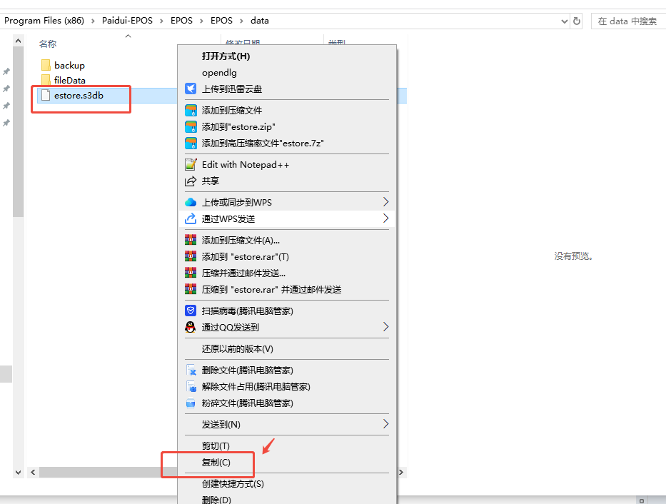 找到软件安装目录(盘符:\Program Files (x86)\Paidui-EPOS\EPOS\EPOS\data)文件里的数据库文件estore.s3db ,