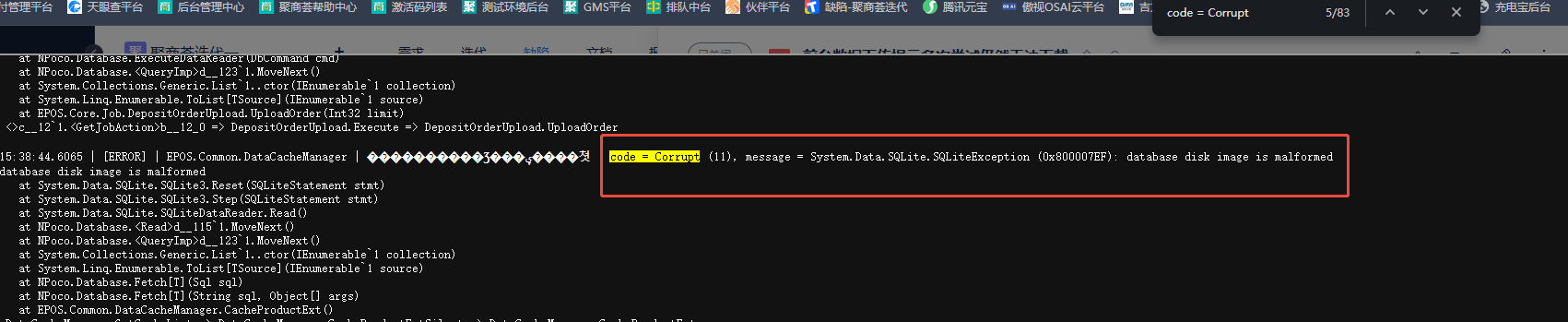 这是一个数据库损坏错误提示语,这种情况就需要修复下数据库,日志可快捷Ctrl+F检索关键词:code = Corrupt比对报错内容核实。