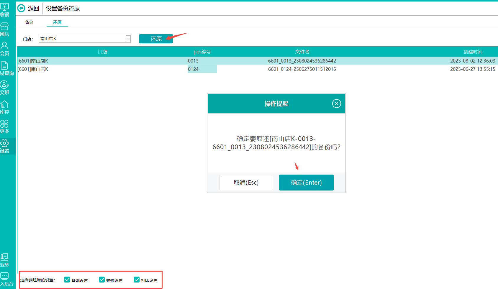 再重新打开pos注册登录下,然后在参数备份里找到备份记录进行恢复,前台功能就能正常使用,重新注册前台不会保留交易数据记录,但是交易记录已经上传后台不影响。