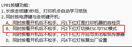 如果是安装聚商荟湃扬安卓收银软件打印标签,需要操作下图B切换为TSC模式,切换模式成功,打印机会自动出一张纸显示TSC字样,软件在重试打印即可;不切换TSC模式聚商荟湃扬零售软件打印标签会显示乱码。