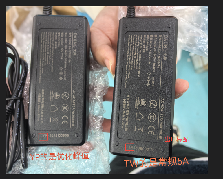 如果修改标签模板打印出现黑屏问题,可以拍照电源型号反馈客服,补发更换宽屏优化过电流峰值5A电源解决此问题,如商户有7A电源自行更换也可以解决电流不稳定影响。