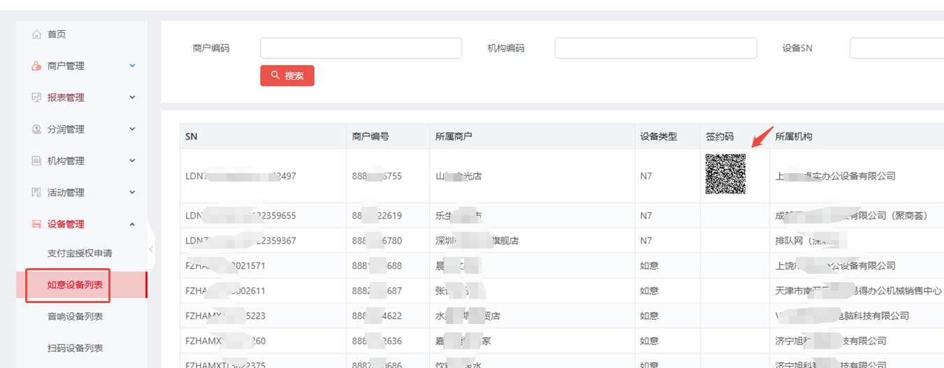 绑定序列号成功后,需要商户法人打开个人支付宝APP扫一下签约码授权(签约码生成可能滞后出来10分钟在刷新,JMS/AMS/MMS后台均支持查看)