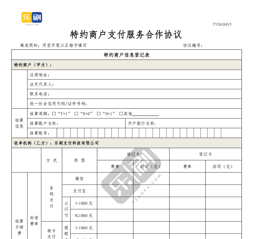 乐刷商户服务协议(纸质版)