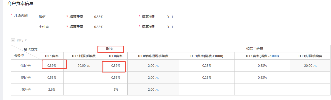 :乐刷通道银行卡费率至少要设置0.43或以上才行